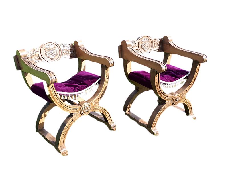 History – This style of chair is one of the most ancient forms of furniture; also known as ‘Curule Chairs’, and are made with or without arms. In ancient Rome, these chairs  were used by the highest government dignitaries, senior magistrates, officials and emperors and served as a place of judgement.