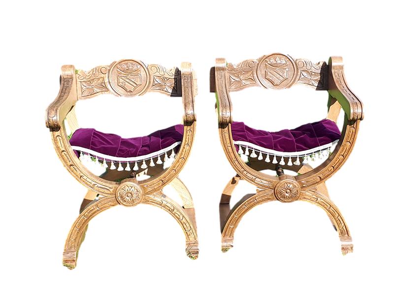 I acquired this pair of Carved Roman Chairs from a family 30 miles down the coast, who were emigrating to Australia.  I beat 60 other potential customers to the post for this stunning pair of Carved Roman Chairs.  Needless to say, I was absolutely delighted!